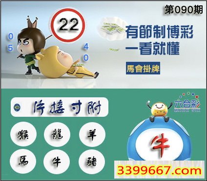 090期正版彩图挂:22 爆:牛 挂牌成语:片接寸附 挂牌出肖:猴龙羊马牛猪