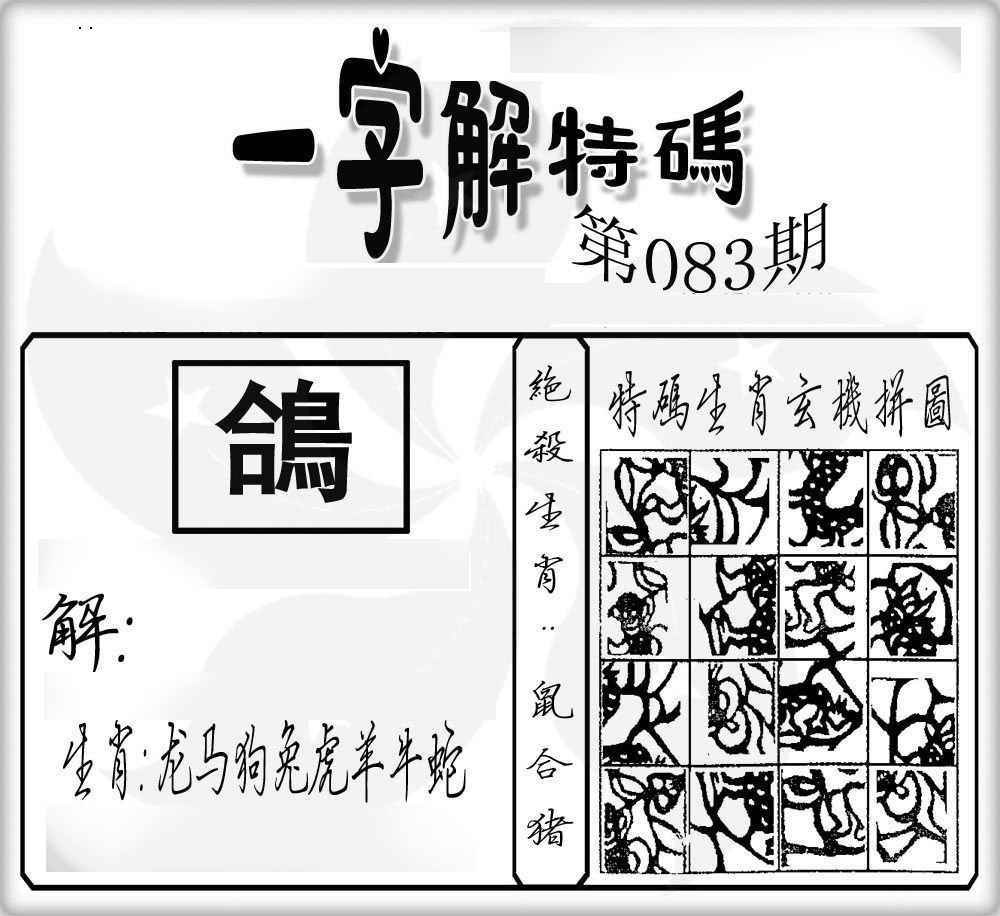 主题 :083期:一字解特码 |