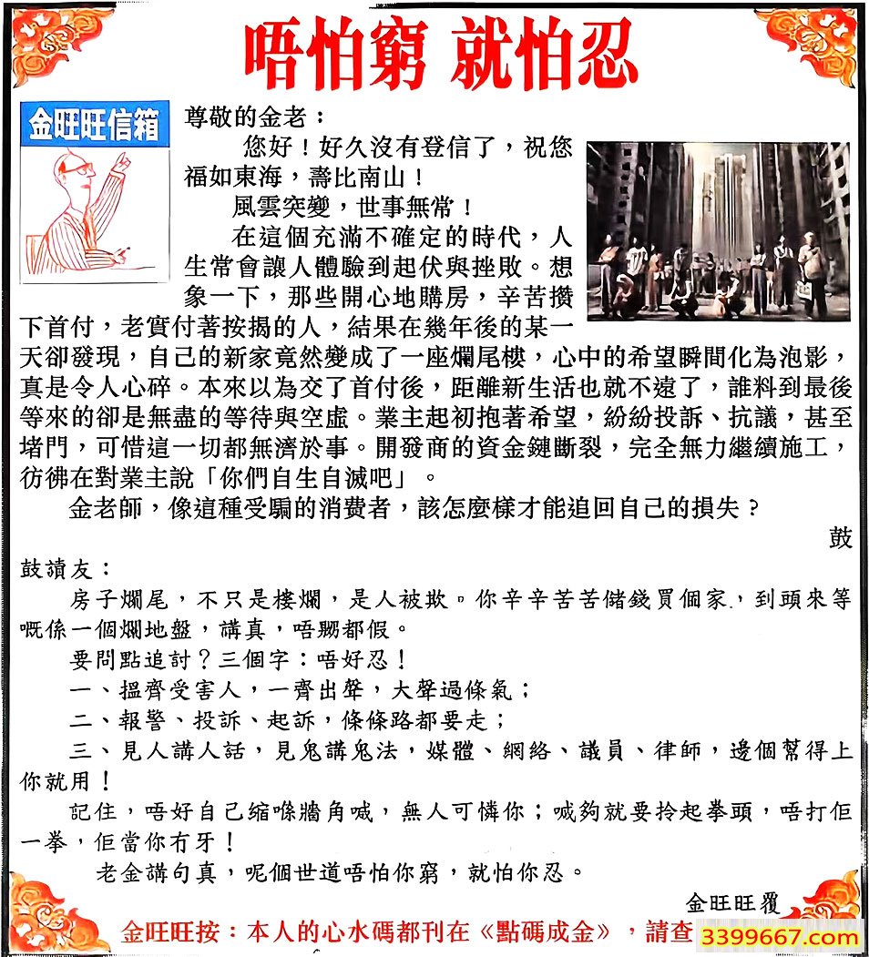 | 主题 :101期:金旺旺信箱彩民推荐→→《唔怕窮 就怕忍》 |