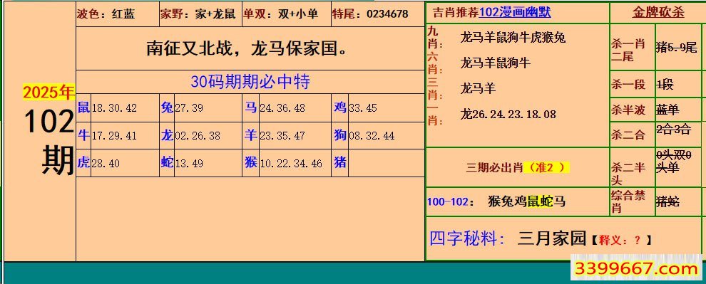 | 主题 :102期:小鱼儿30码期期中+幽默猜测 |