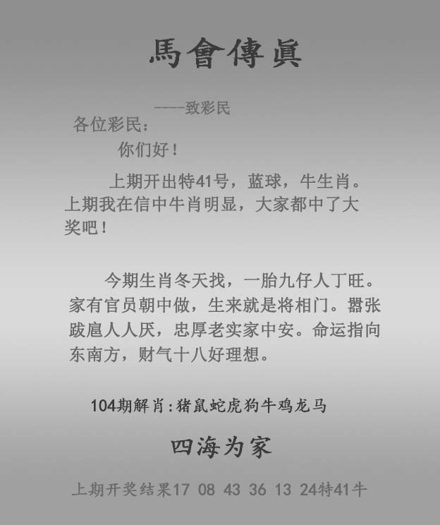 | 主题 :104期:正马会传真 |