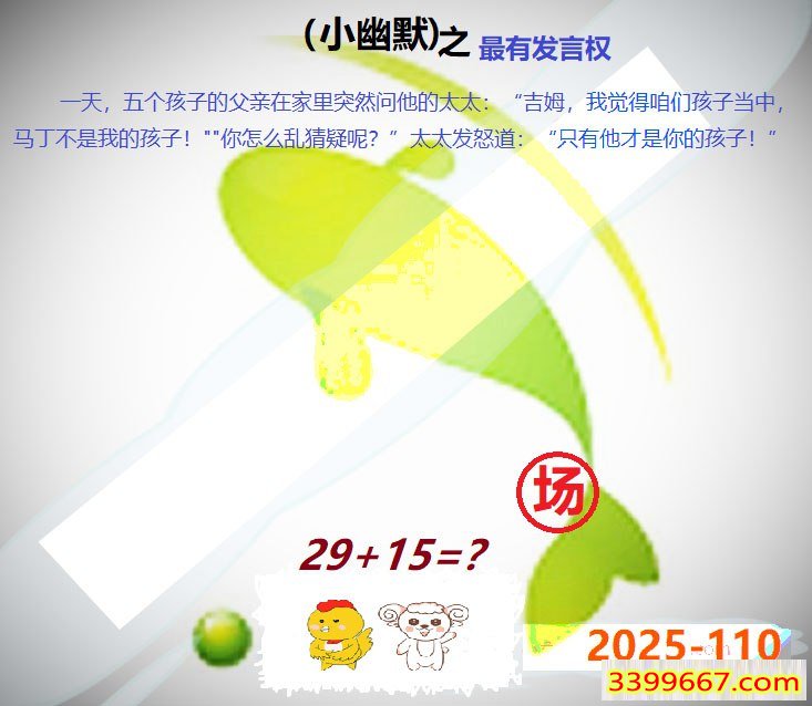 | 主题 :110期:小鱼儿30码期期中+幽默猜测 |