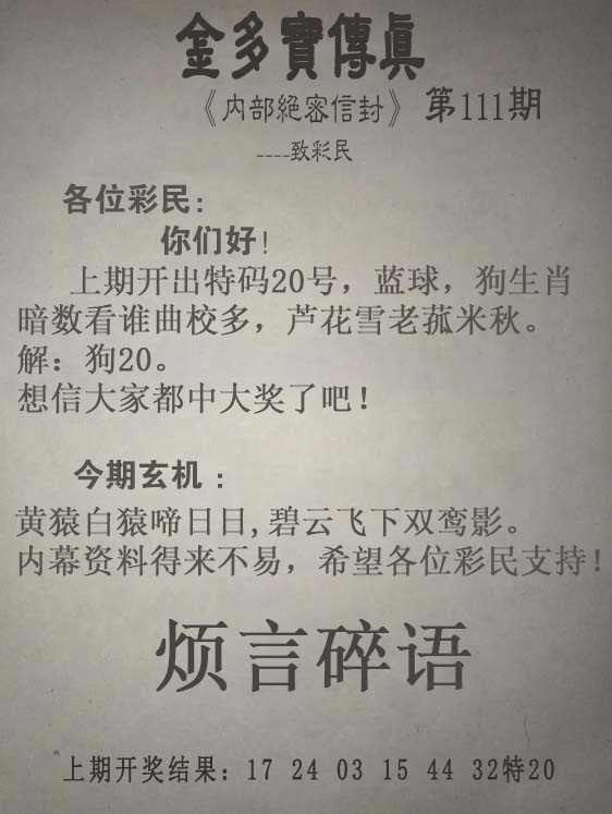 | 主题 :111期:另版【金多寶傳真】 |