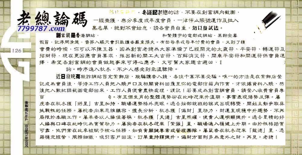 126期:六合皇金句/老总论码/萧公子/林大师/五行夺码/老总信箱截