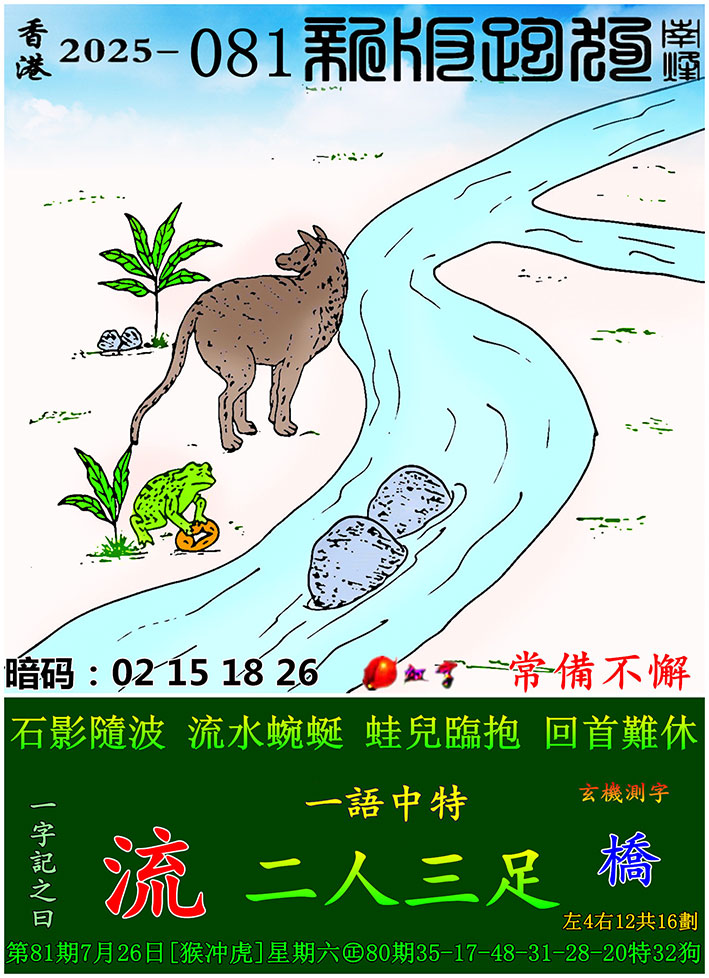 主题 :081期:新版跑狗一字記之曰【流】 玄機測字:【橋】