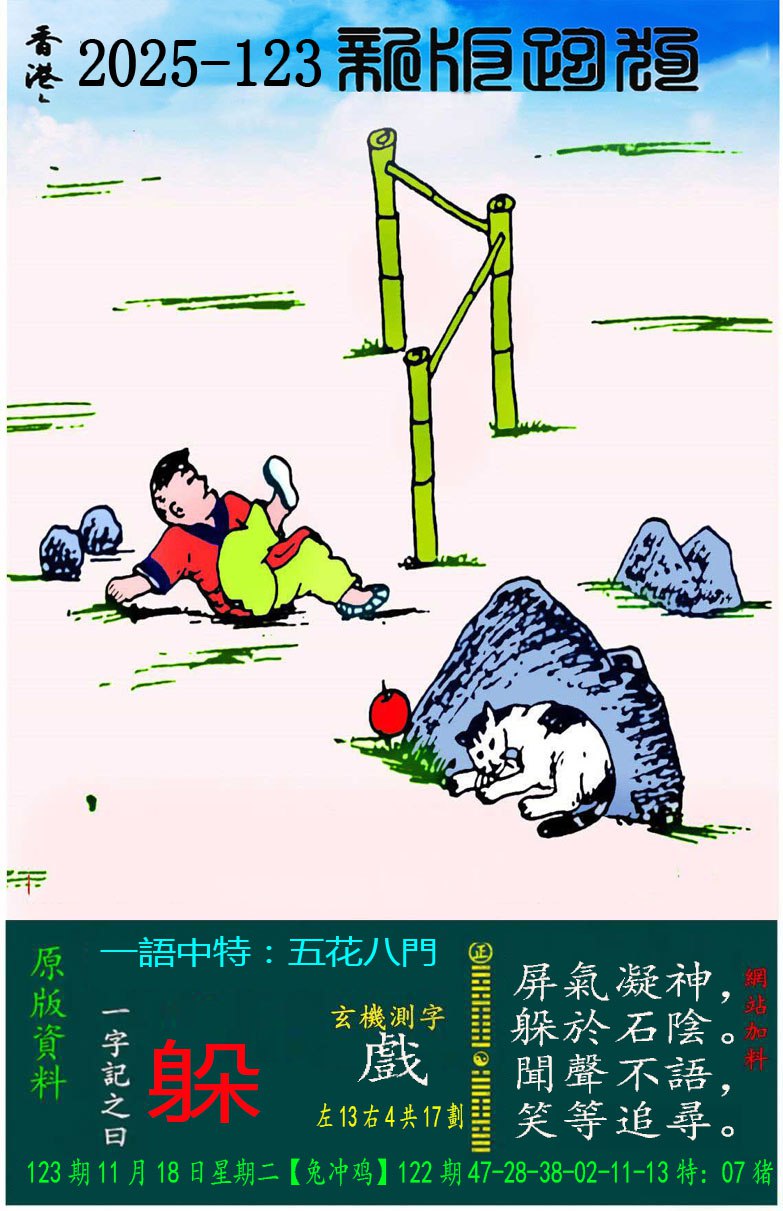 | 主题 :123期:新版跑狗一字記之曰【躲】 玄機測字:【戲】 |