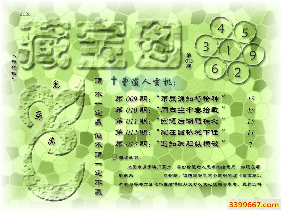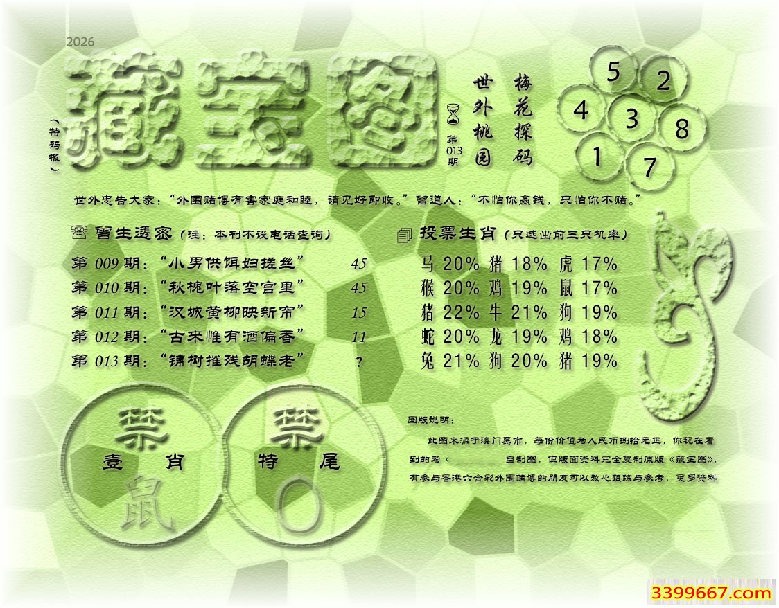 主题 :013期藏寶圖 新:遥知贼胆纵横破 老:锦树摧残蝴蝶老 禁:鼠 禁:0尾