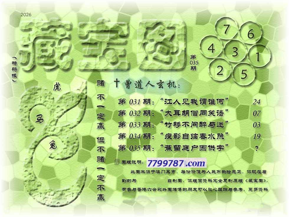 035期藏寶圖 新:蕉留庭户因供字 老:日长暗记残香篆 禁:蛇 禁:8尾 玄機字:《渐》