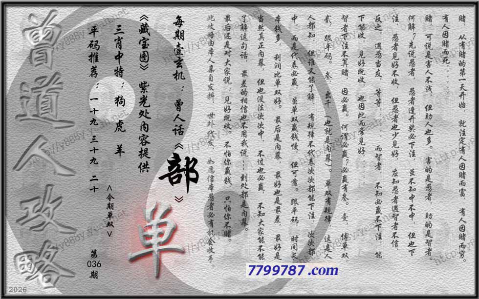 036期藏寶圖 新:西第将军成底事 老:剑花秋莲光出匣 禁:龙 禁:2尾 玄機字:《部》