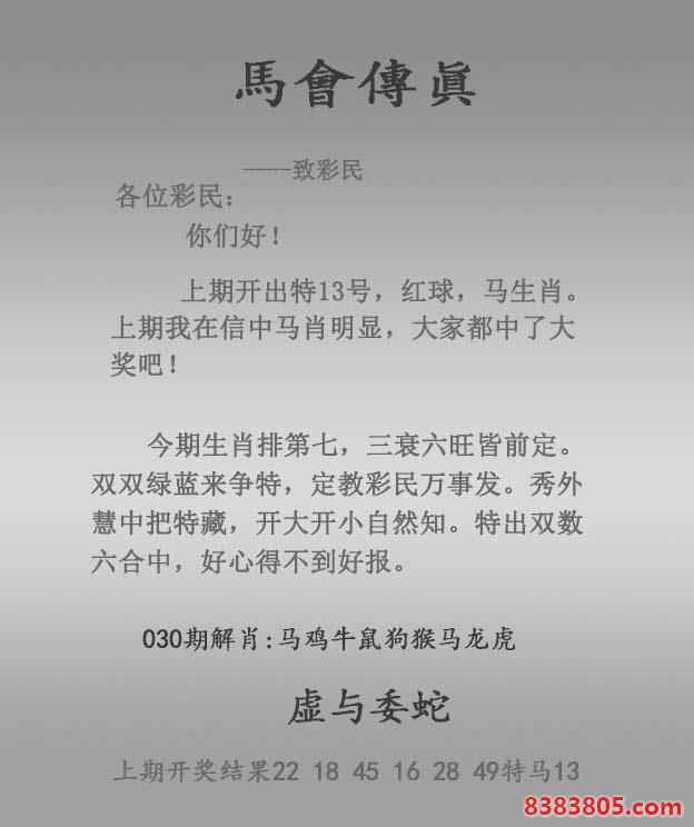 030期:正马会传真