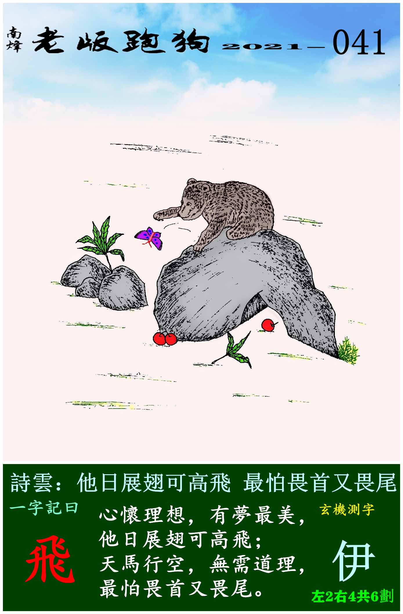 041期老版跑狗一字記之曰:【飛】玄機測字:《伊》