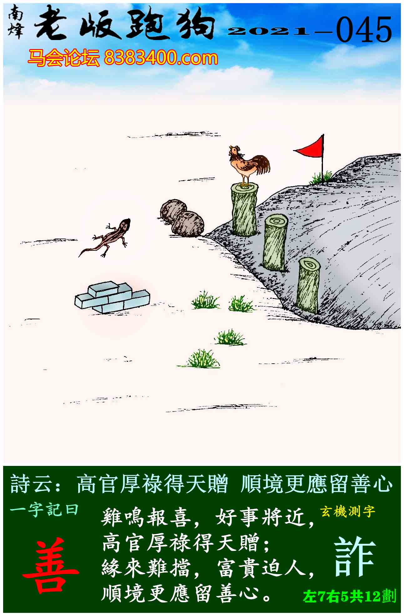 045期老版跑狗一字記之曰:【善】玄機測字:《詐》