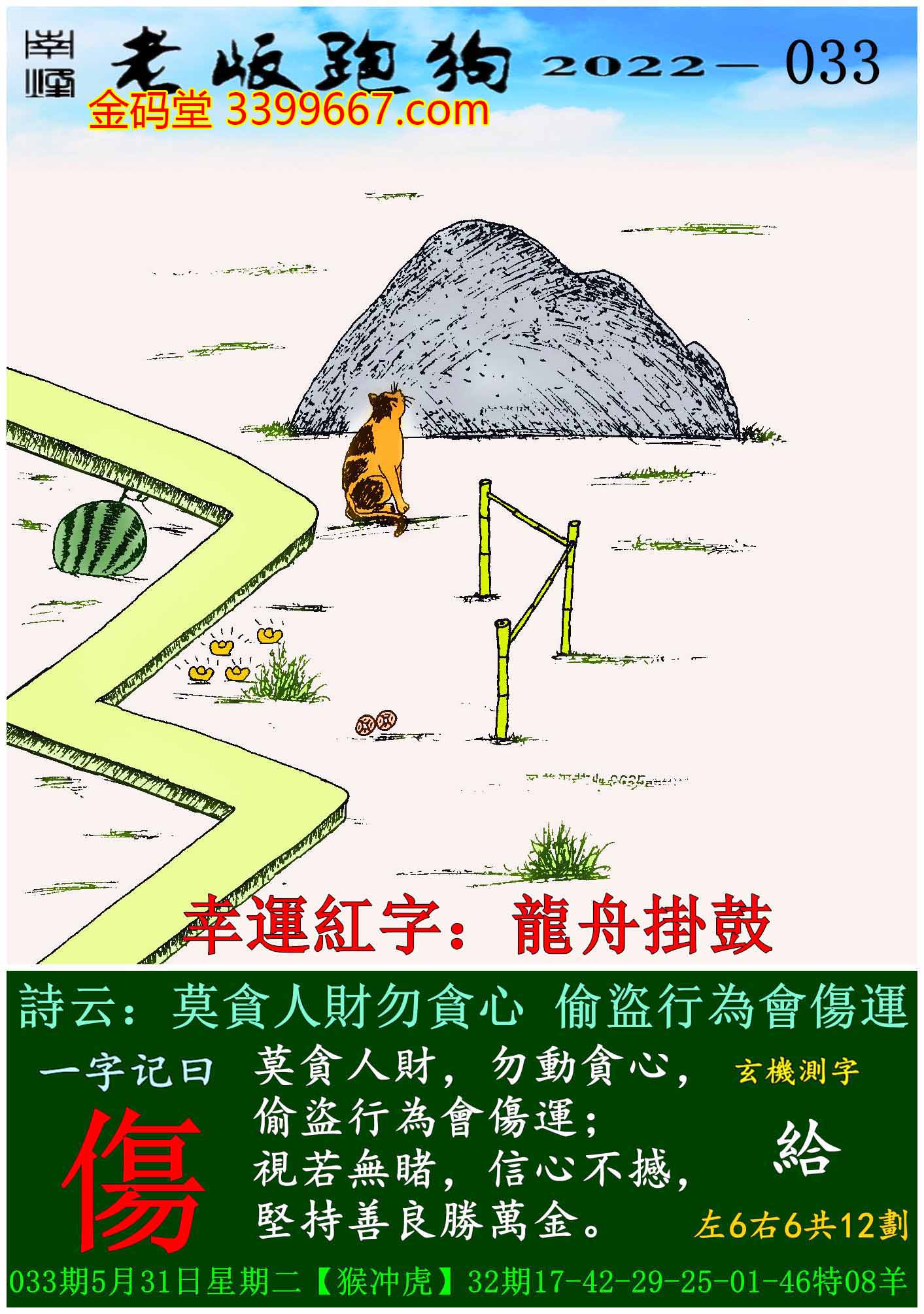 033期老版跑狗一字記之曰:【傷】