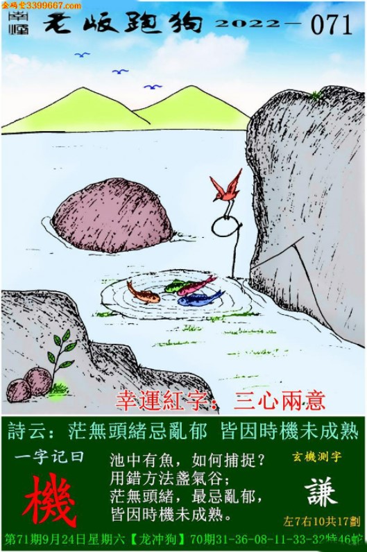 071期老版跑狗一字記之曰:【機】