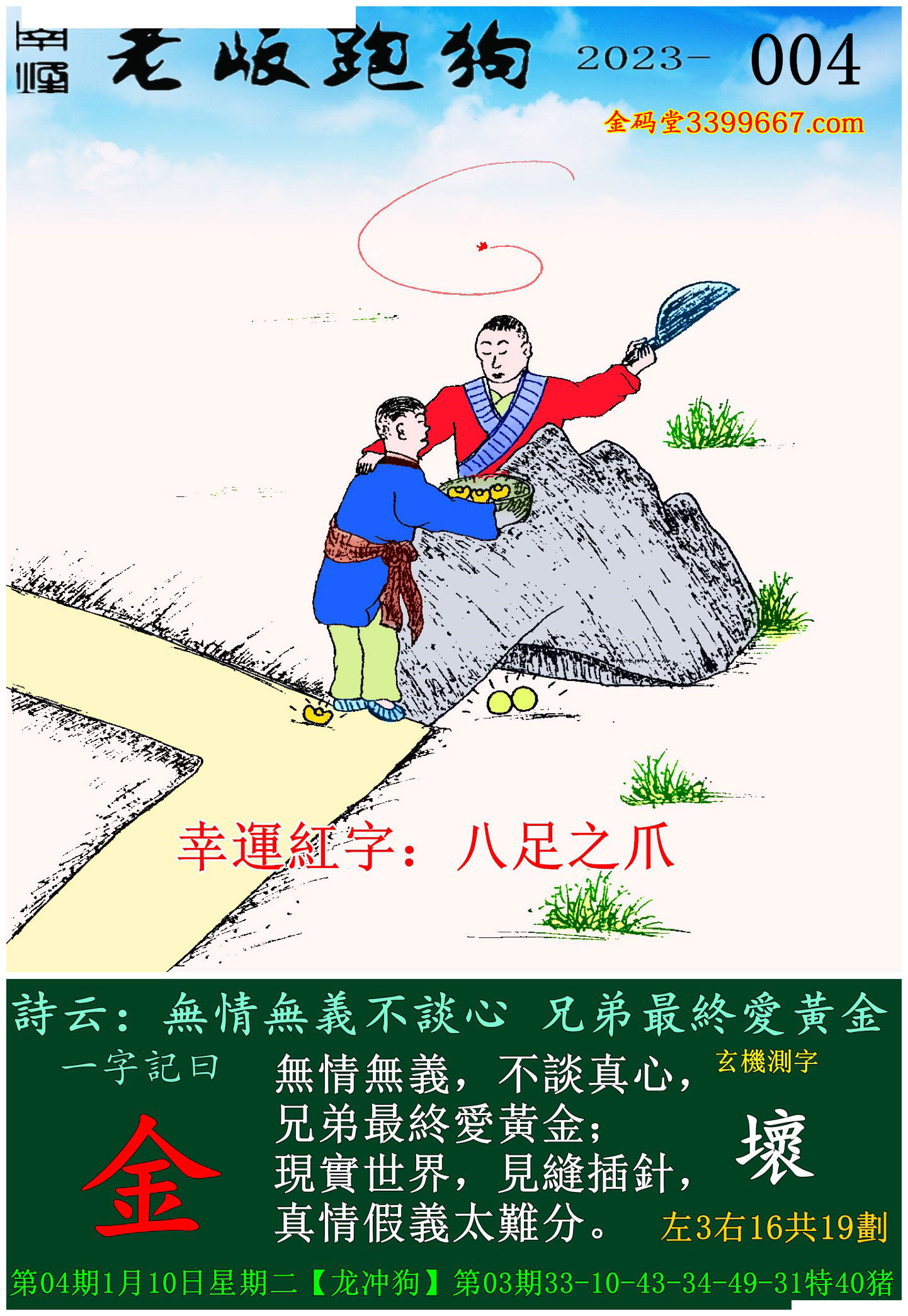 004期老版跑狗一字記之曰:【金】