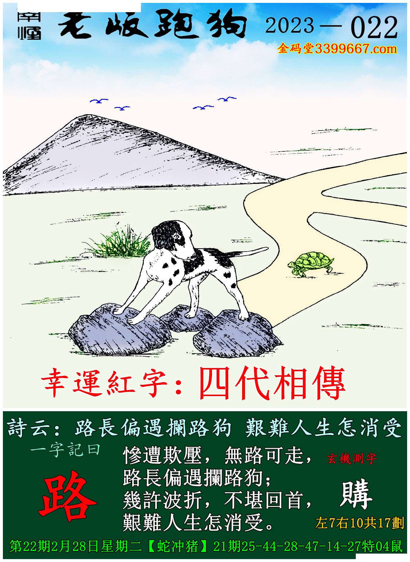 022期老版跑狗一字記之曰:【路】