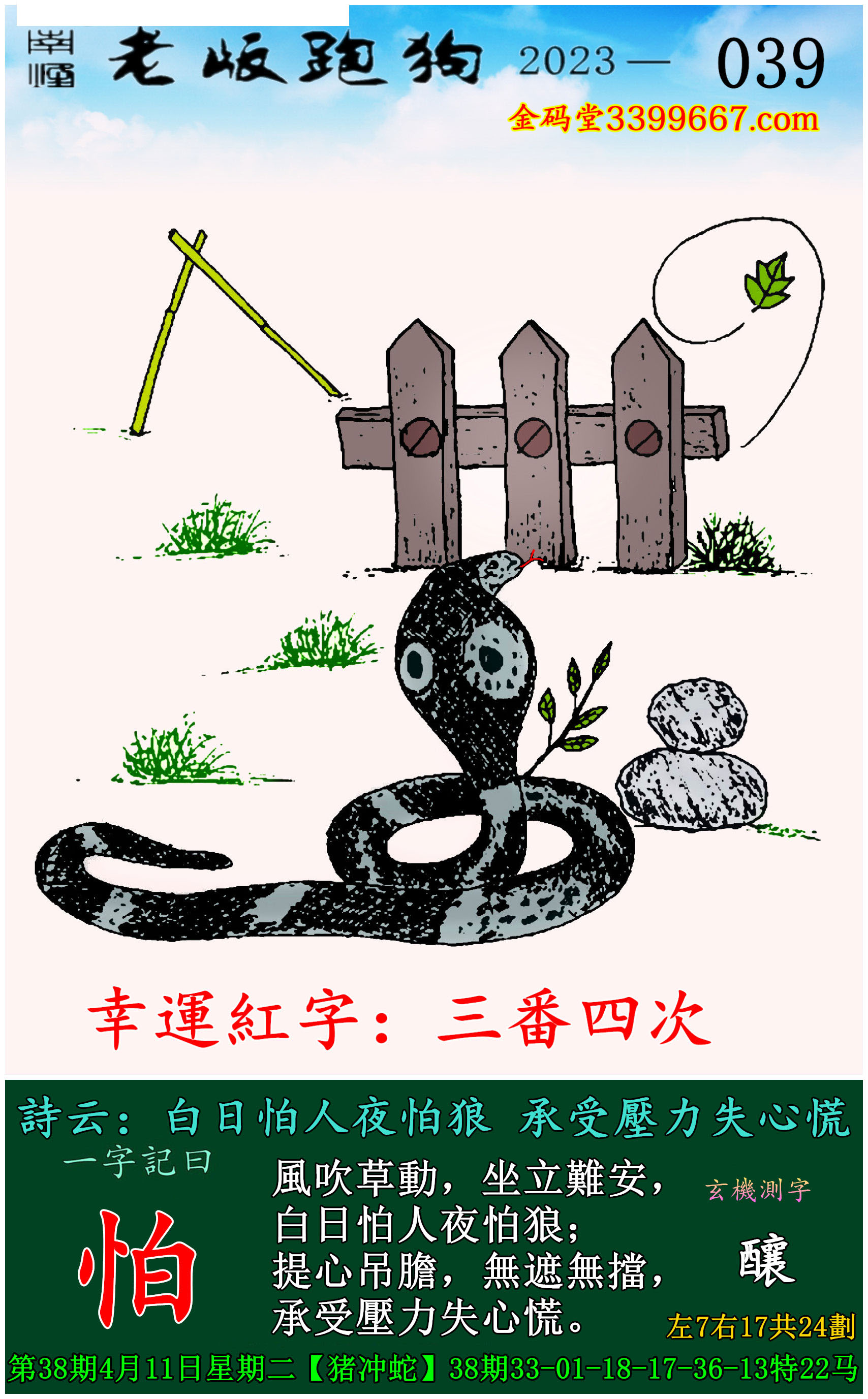 主题 : 039期老版跑狗一字記之曰:【怕】玄機測字:《釀》