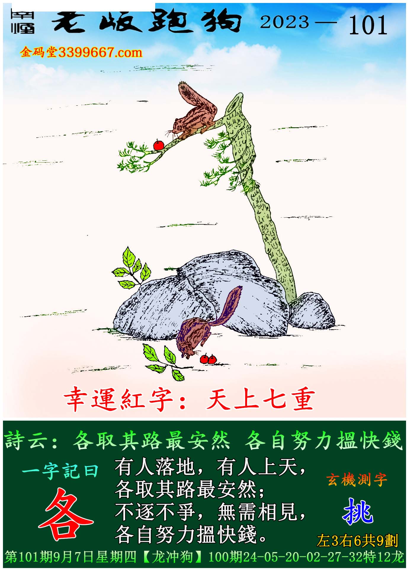 101期老版跑狗一字記之曰:【各】