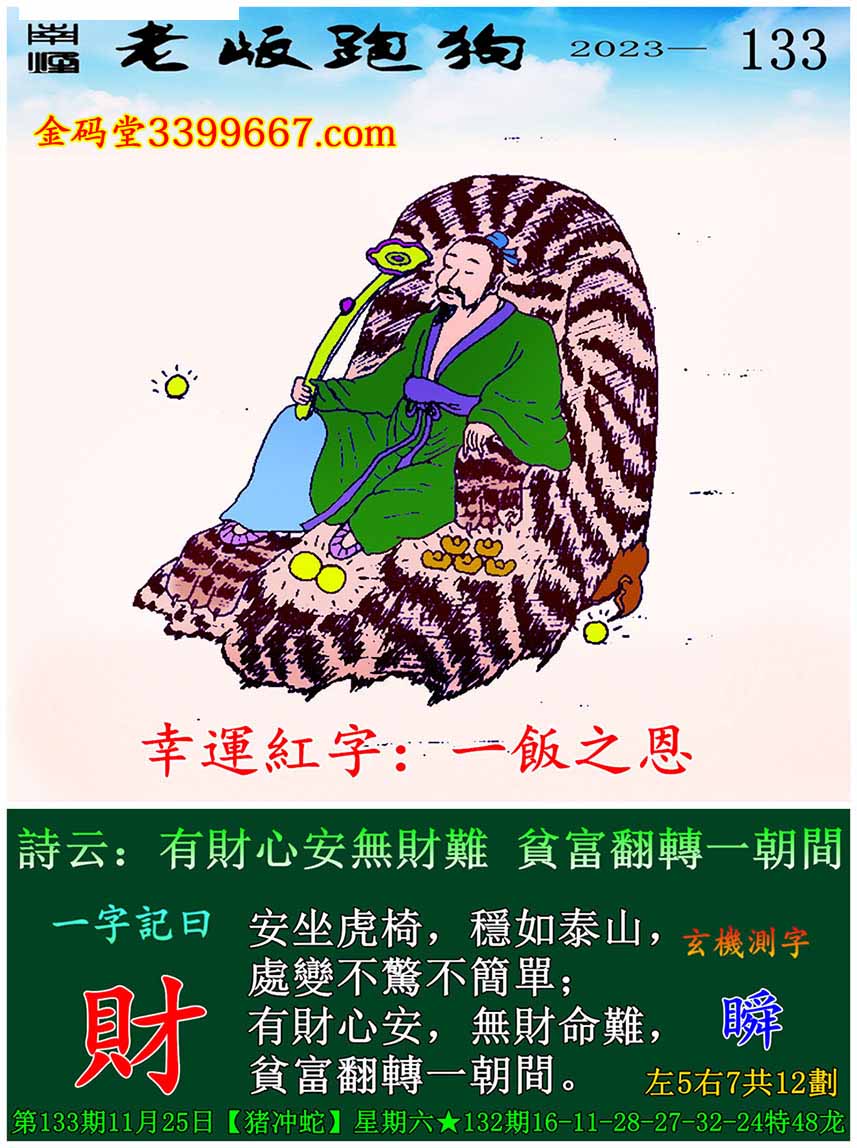 主题 : 133期老版跑狗一字記之曰:【財】玄機測字:《瞬》