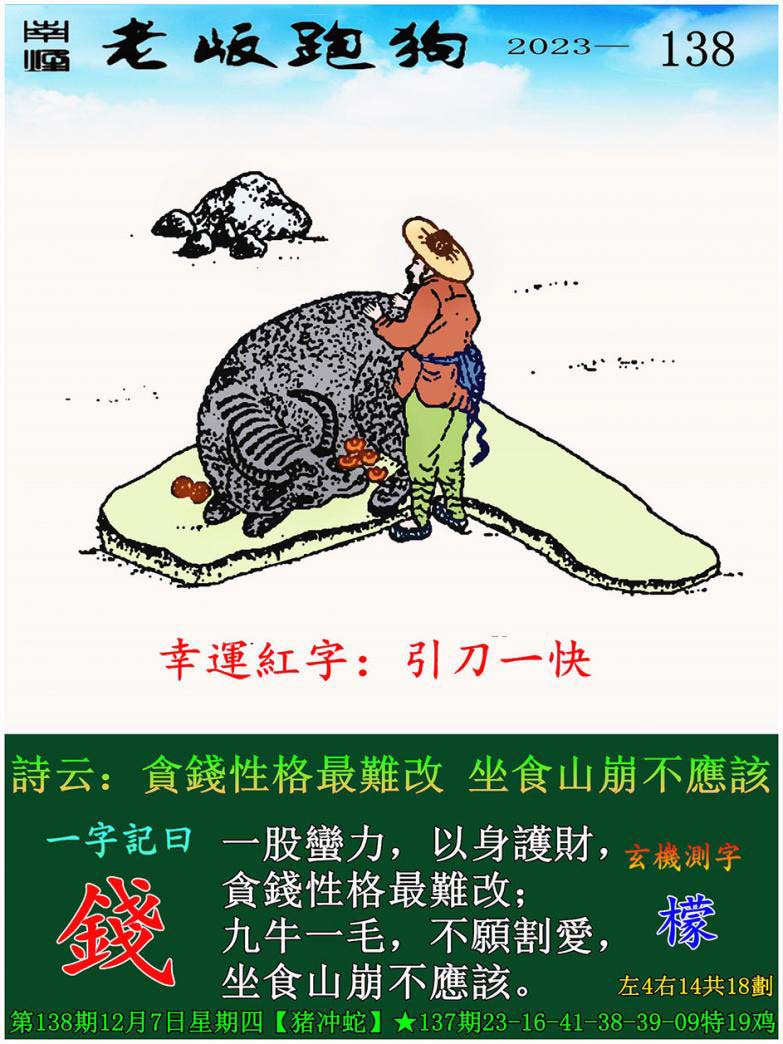 主题 : 138期老版跑狗一字記之曰:【錢】 玄機測字:《檬》