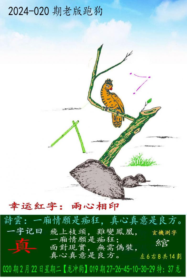 020期老版跑狗一字記之曰:【真】