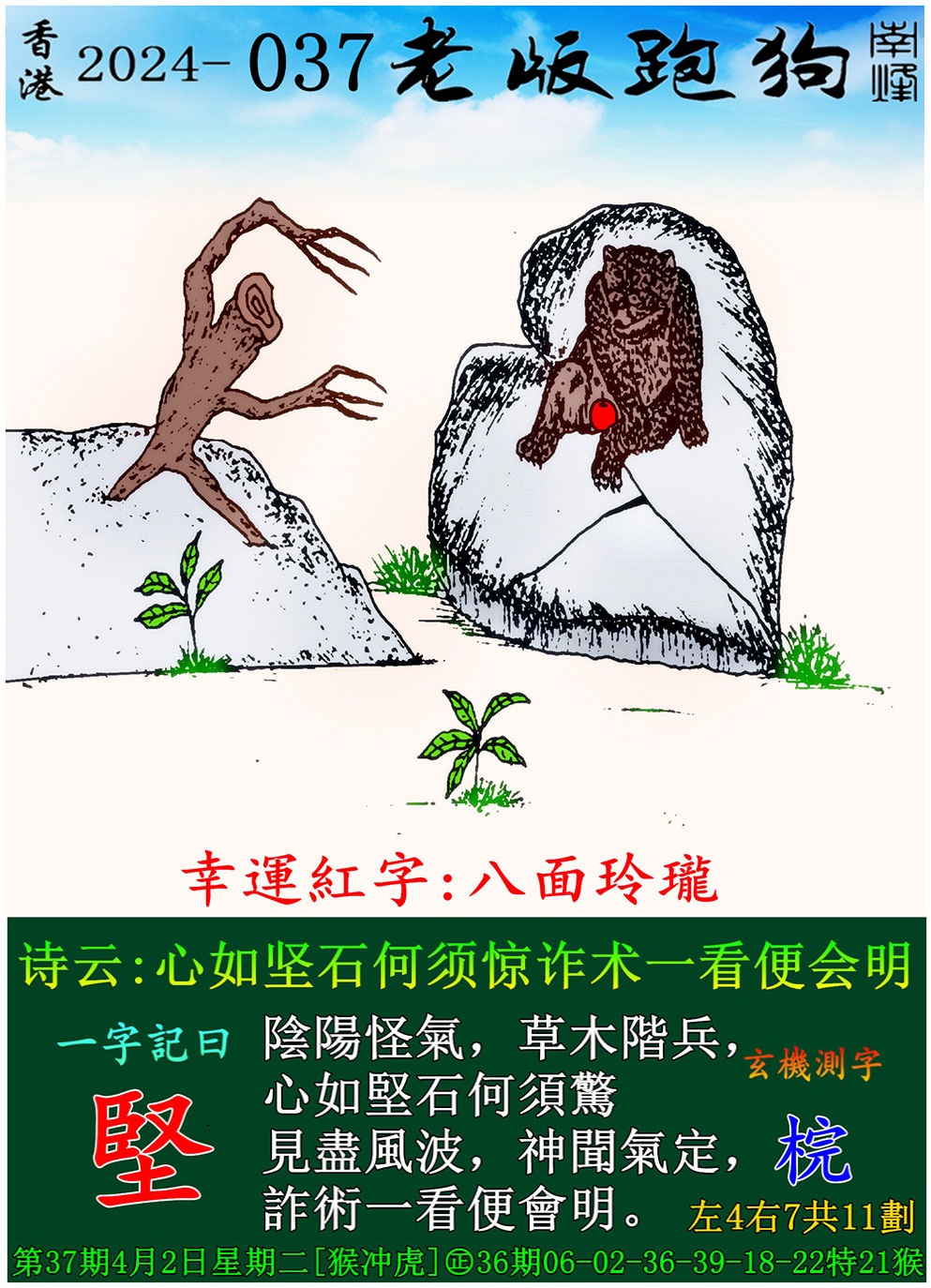 037期老版跑狗一字記之曰:【堅】 玄機測字:《梡》