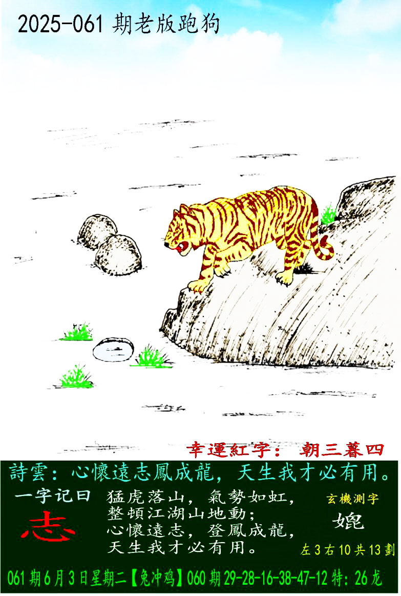 061期老版跑狗一字記之曰:【志】