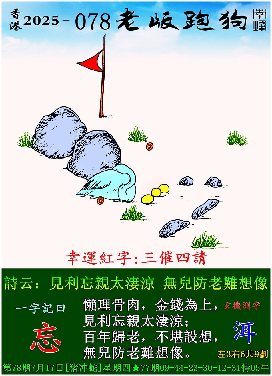 078期老版跑狗一字記之曰:【忘】