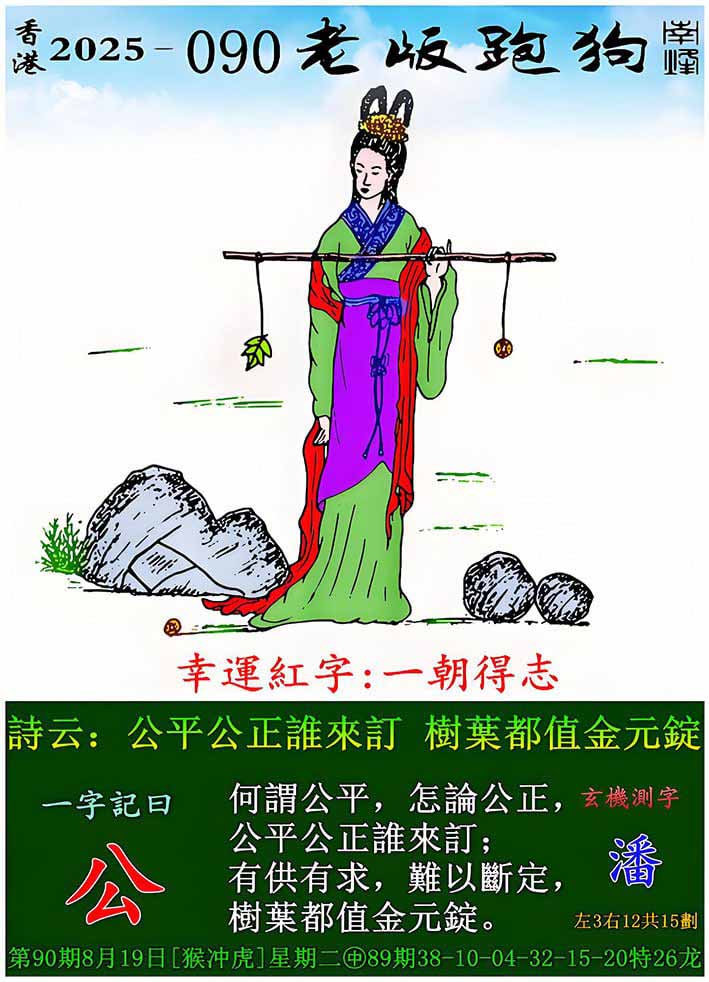 090期老版跑狗一字記之曰:【公】 玄機測字:《潘》