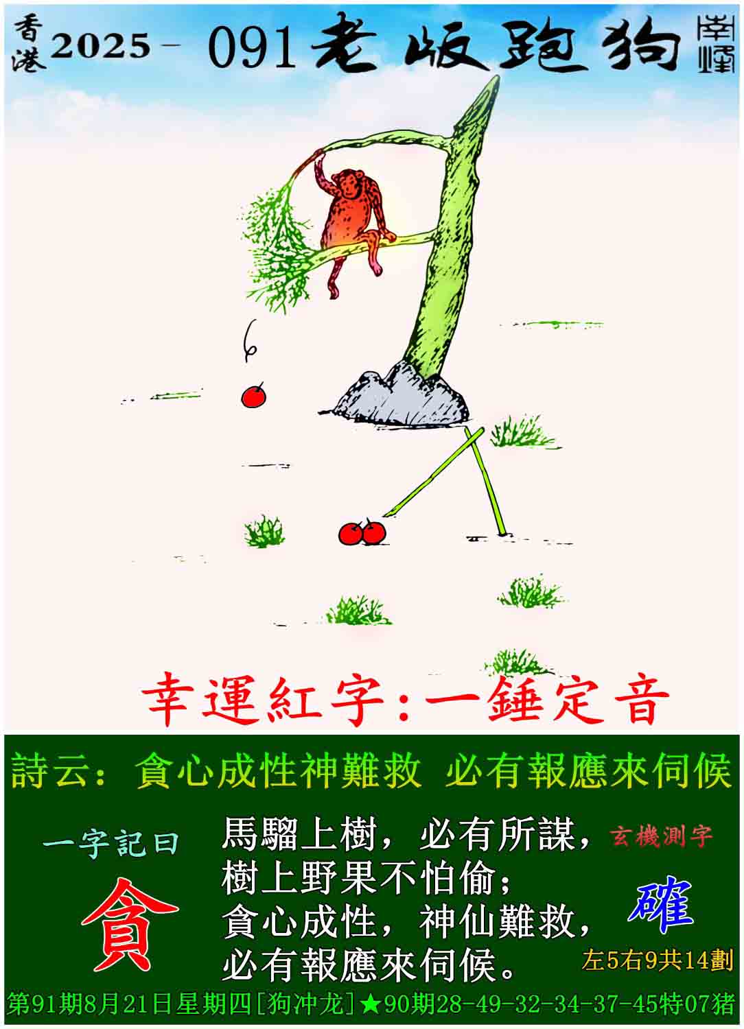 091期老版跑狗一字記之曰:【貪】 玄機測字:《確》