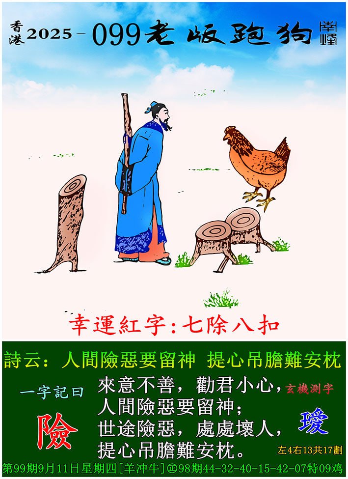 099期老版跑狗一字記之曰:【險】