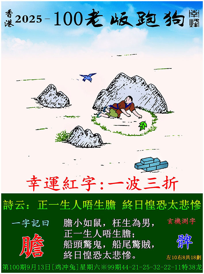 100期老版跑狗一字記之曰:【膽】 玄機測字:《髀》