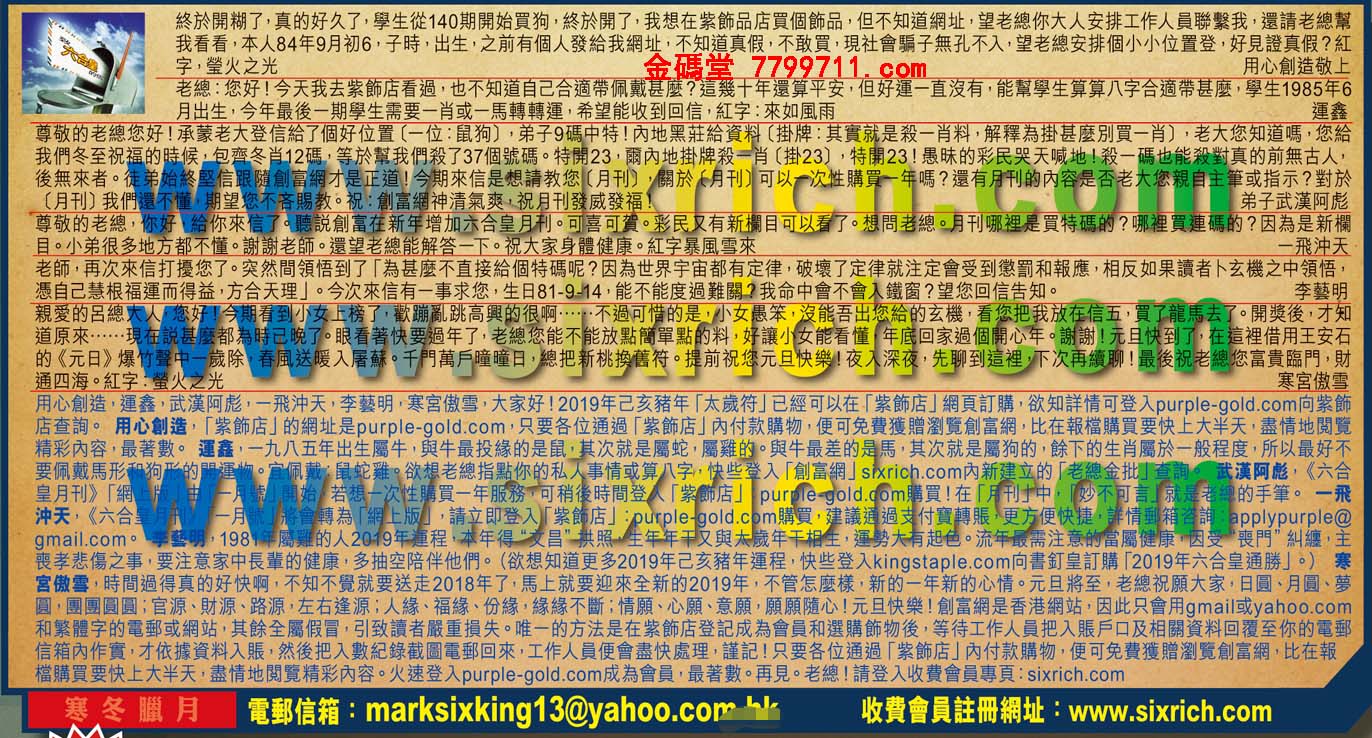 【3】尊敬的老總您好!承蒙老大登信給了個好位置(一位:鼠狗),弟子9碼中特!內地黑莊給資料(掛牌:其實就是殺一肖料,解釋為掛甚麼別買一肖,老大您知道嗎,您给我們冬至祝福的時候,包齊冬肖12碼,等於幫我們殺了37個號碼。特開23,爾內地掛牌殺一肖[掛23),特開23!愚昧的彩民哭天喊地!殺一碼也能殺對真的前無古人,後無來者。徒弟始終堅信跟隨創富網才是正道!今期來信是想請教您(月刊),關於(月刊)可以一次性購買一年嗎?還有月刊的內容是否老大您親自主筆或指示?對於(月刊)我們還不懂,期望您不吝賜教。祝:創富網神清氣爽.祝月刊發威發福! ---弟子武漢阿彪