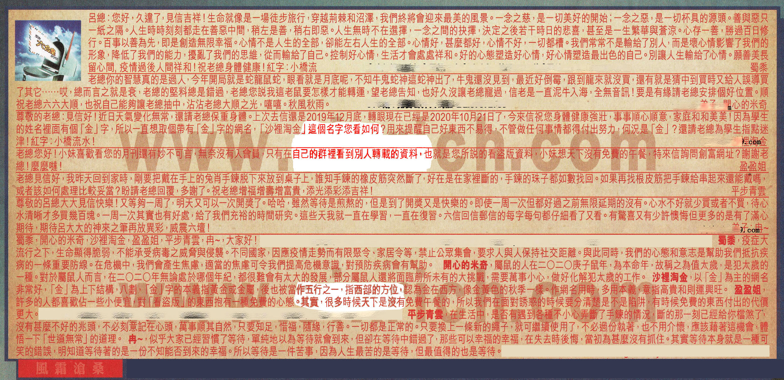 【4】老總您好!小妹喜歡看您的月刊還有妙不可言無奈沒有人會員只有在自己的群裡看到別人轉載的資料也就是您所說的看盗版資料,小妹想天下沒有免费的午餐:特來信詢問創富網址?謝謝老總!麼麼噠! ---盈盈姐