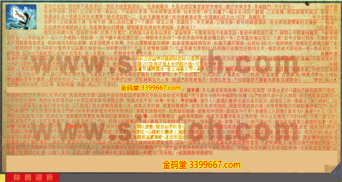 【5】. 尊敬的老總:展信吉安!學生不知從甚麼時時候開始,每期都想從六信的只言片語中尋找老總的蛛絲馬跡,悟出玄機,成功攻克黑莊的金庫,但偏偏事與願違,又是輸。可能是我的文化水平太低吧,無法領悟老總的言詞。只能努力認真學習,繼續征戰,但願2022年能跟上老總的步伐。祝聖誕快樂!!!!!  牟龍