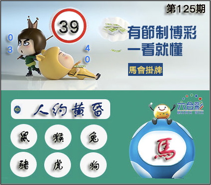 125期正版彩图挂:39 爆:马 挂牌成语:人約黃昏 挂牌出肖:鼠猴兔猪虎狗
