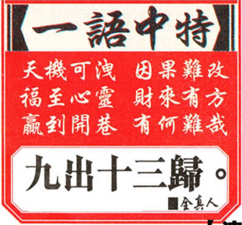 一語中特:九出十三歸。