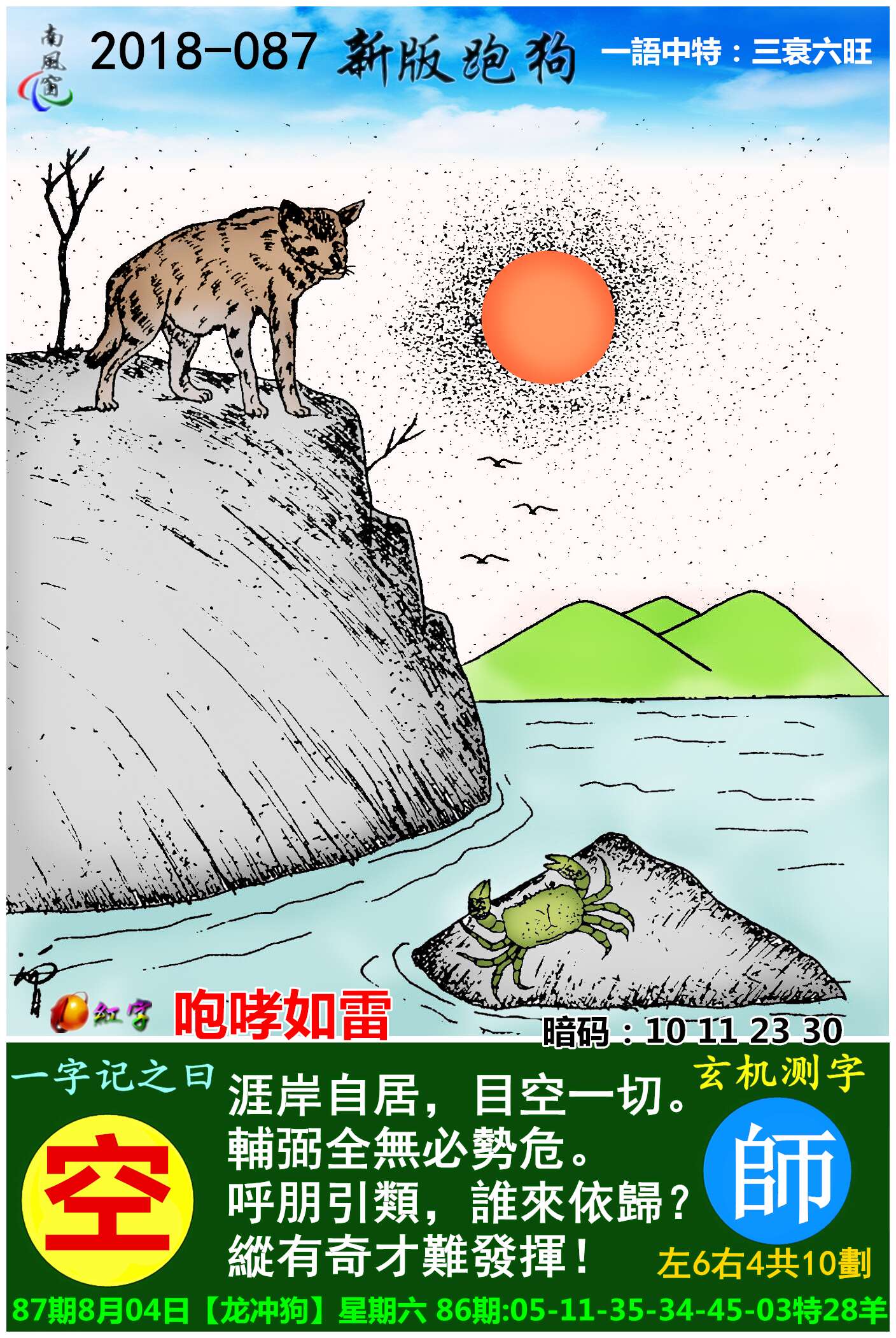 087期新版跑狗一字記之曰:【空】