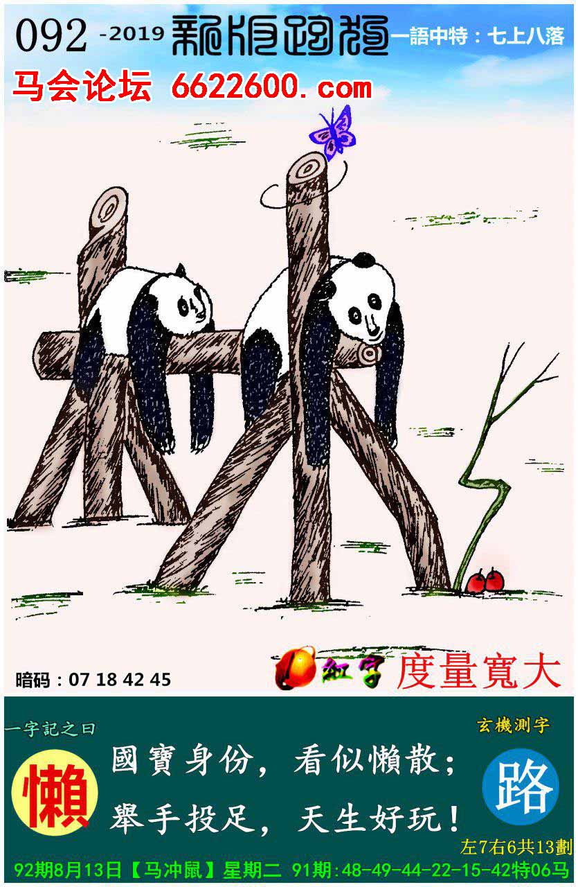 092期:新版跑狗一字記之曰【懶】玄機測字:《路》