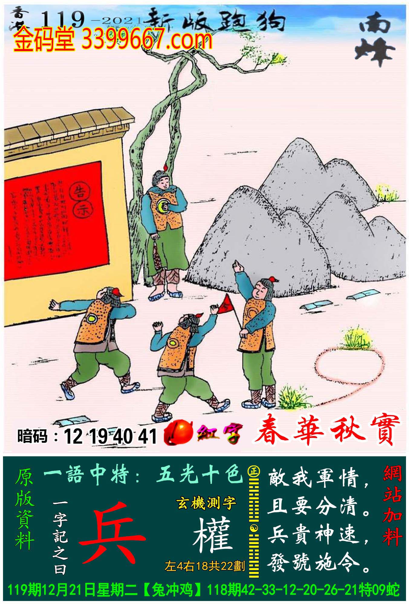 主题 : 119期:新版跑狗一字記之曰【兵】玄機測字:《權》