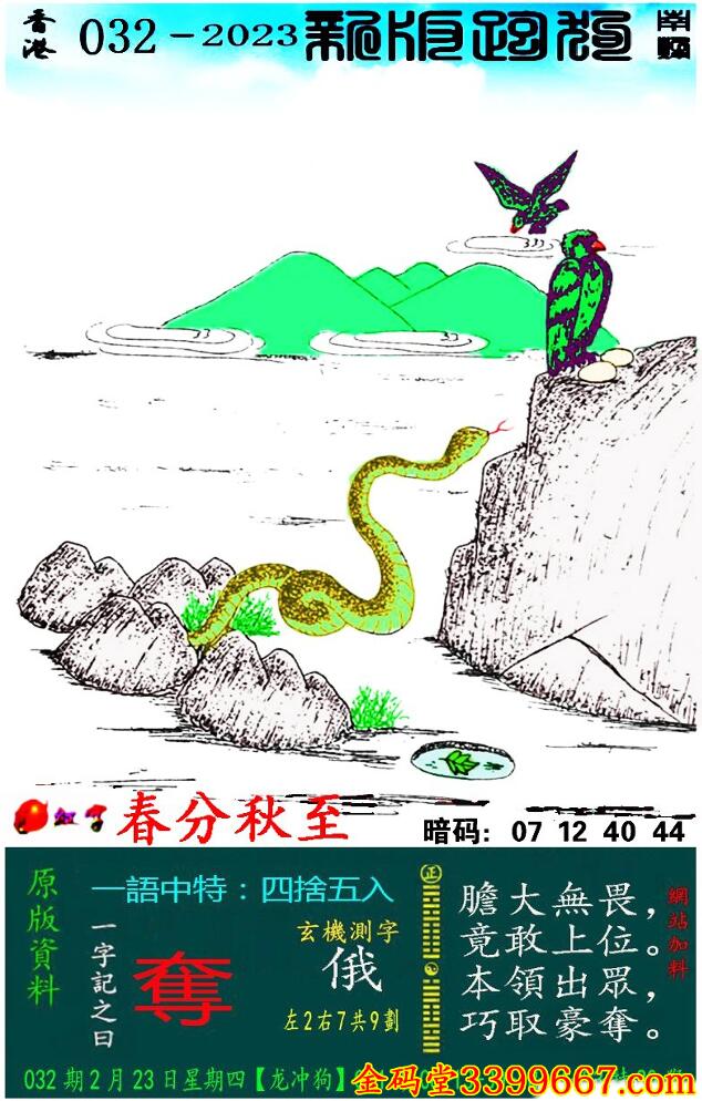 032期:新版跑狗一字記之曰【奪】 玄機測字:《俄》