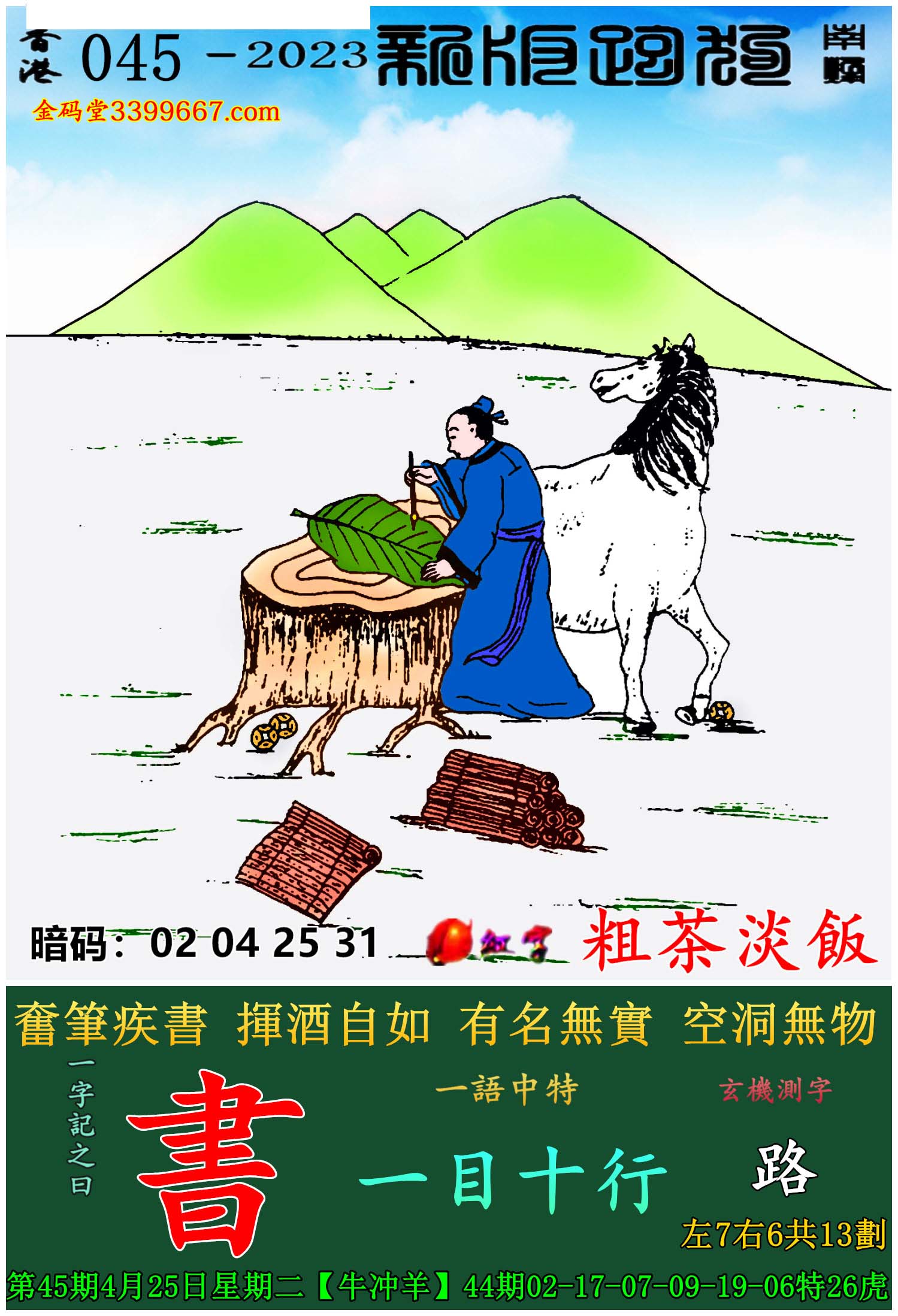 主题 : 045期:新版跑狗一字記之曰【書】玄機測字:《路》