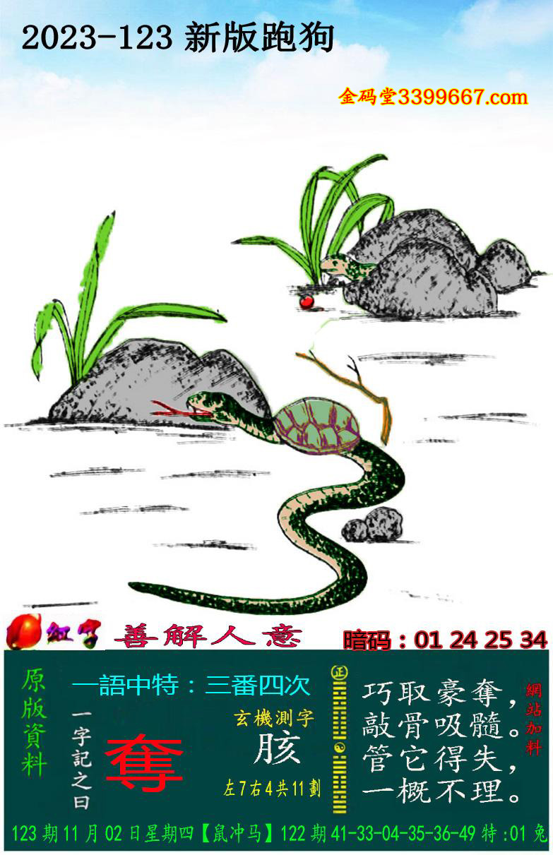123期:新版跑狗一字記之曰【奪】玄機測字:《胲》