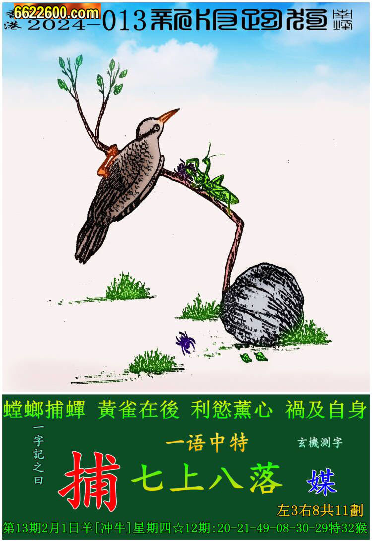 013期:新版跑狗一字記之曰【捕】 玄機測字:《媒》