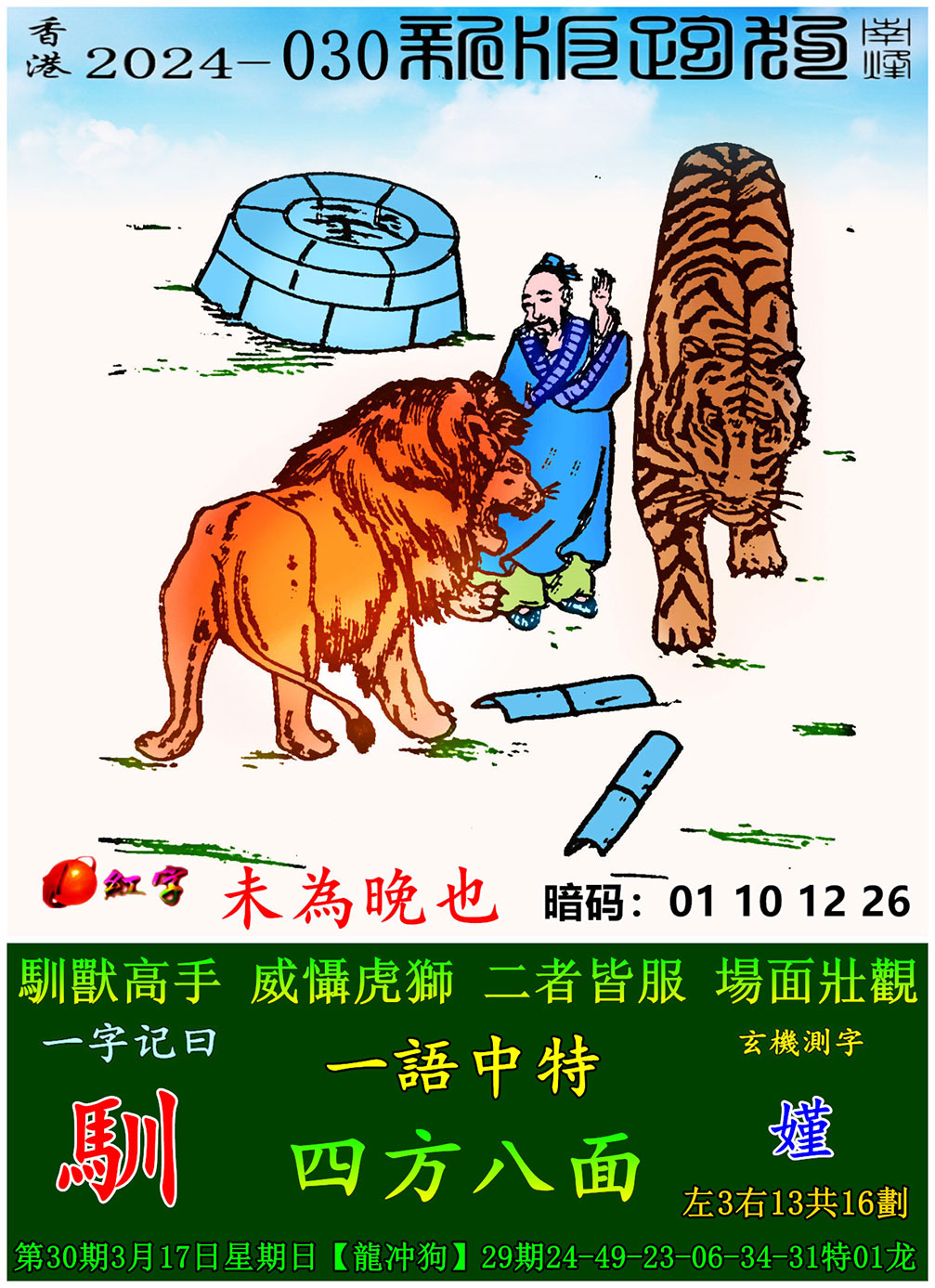 030期新版跑狗一字記之曰:【馴】