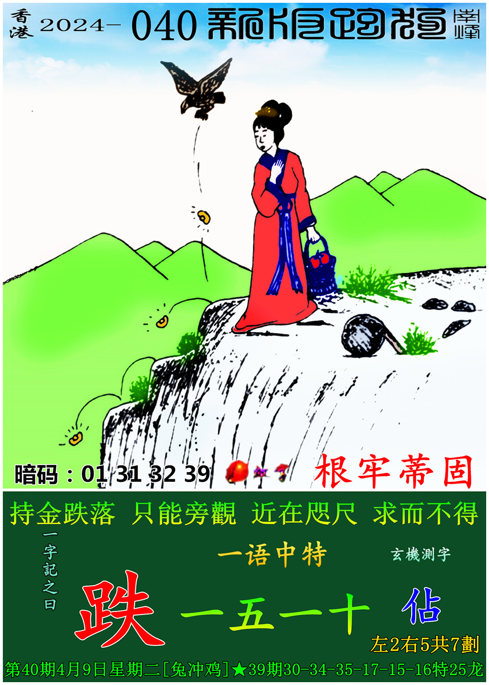 040期新版跑狗一字記之曰:【跌】