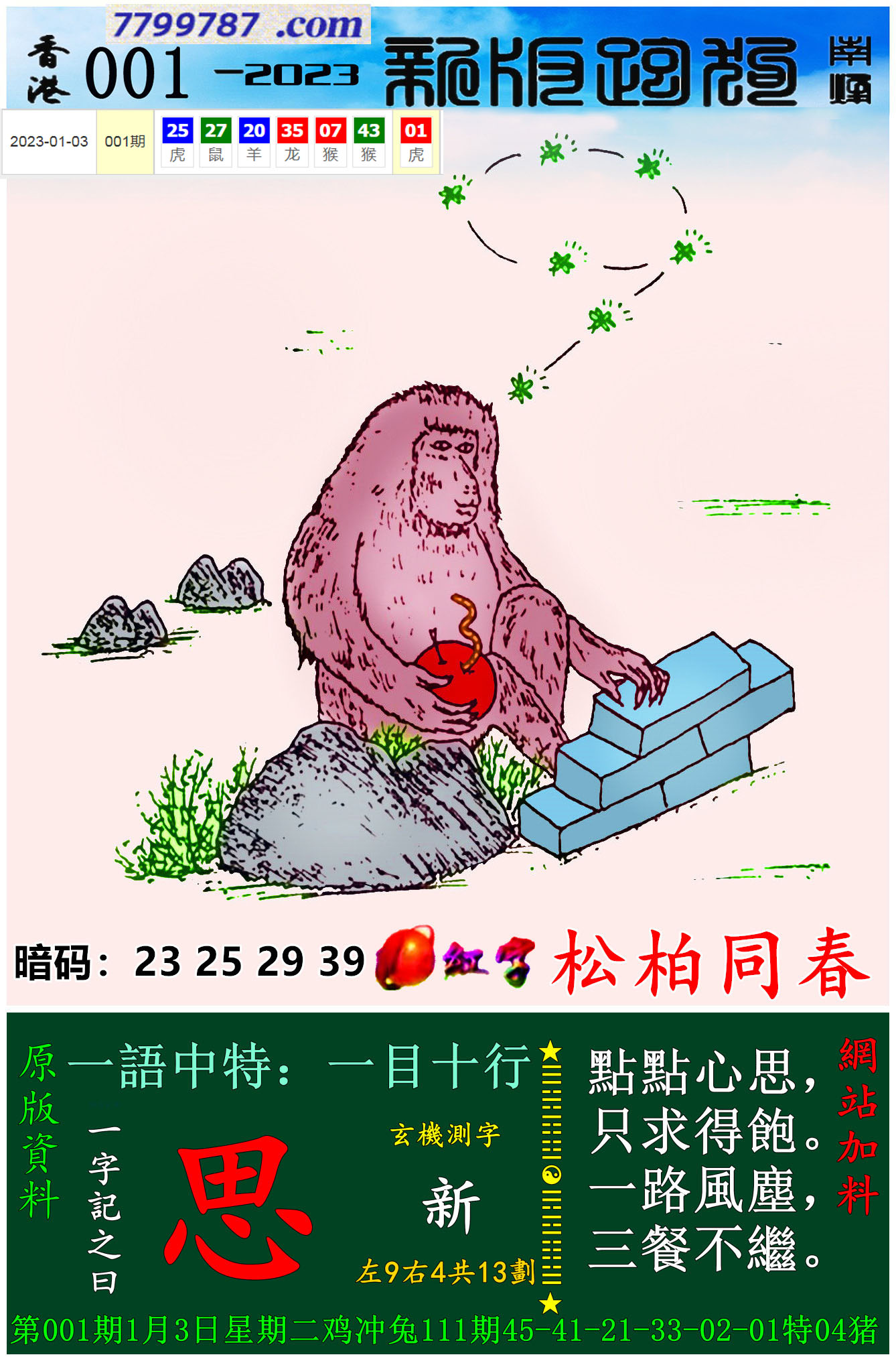 110期新版跑狗一字記之曰:【想】