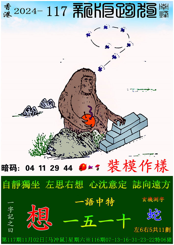 117期:新版跑狗一字記之曰【想】 玄機測字:【蛇】