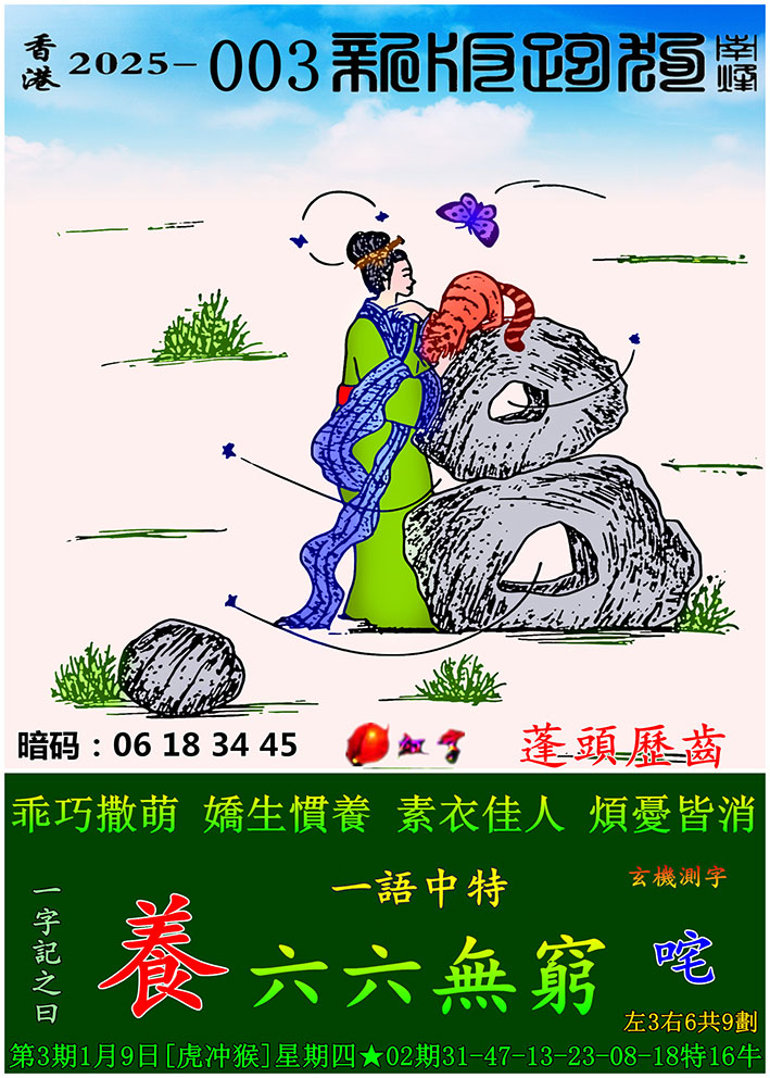 003期:新版跑狗一字記之曰【養】 玄機測字:【咤】