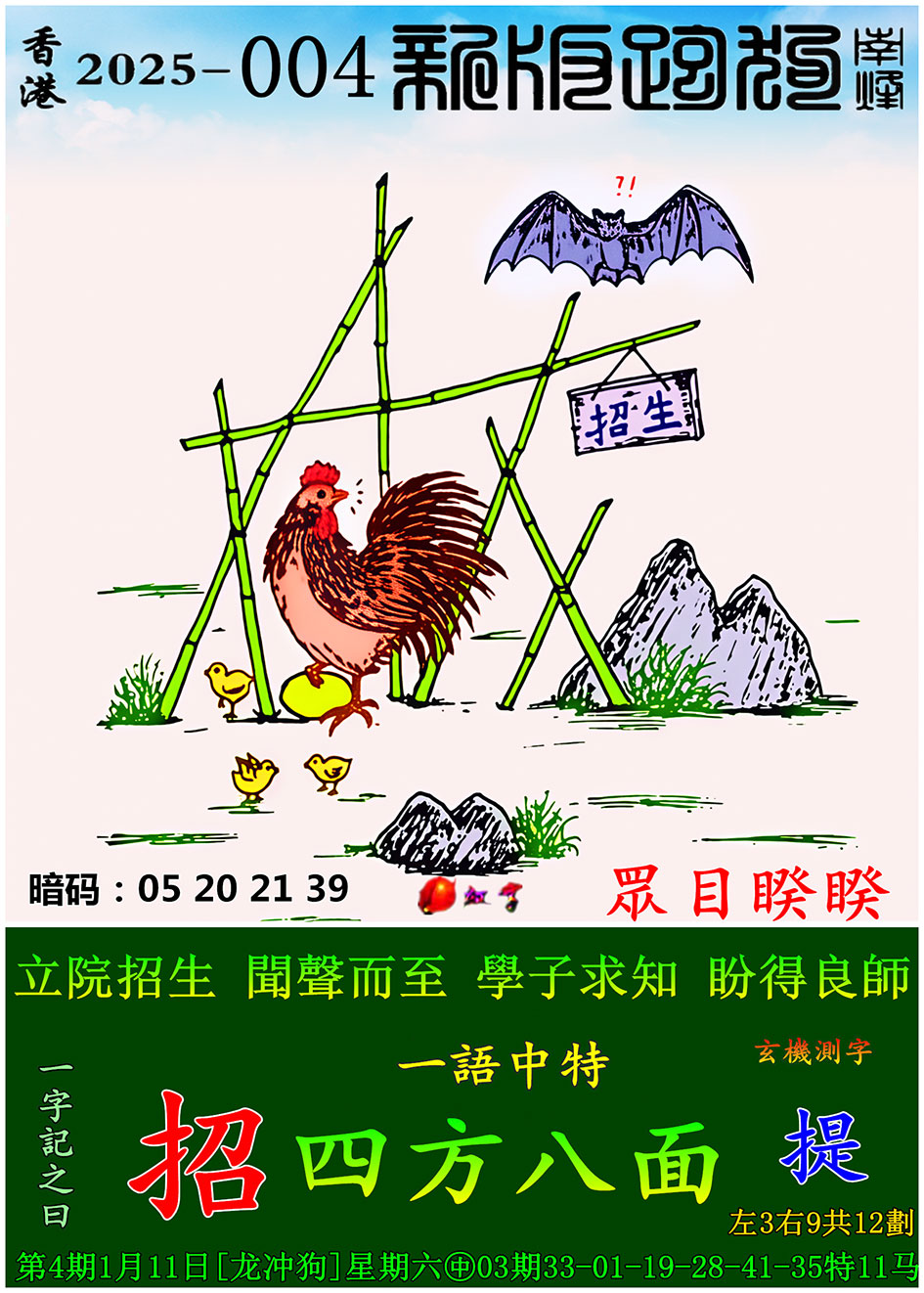004期新版跑狗一字記之曰:【招】